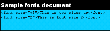 add or take away from the current size. In the above example, the first font change (size=+2) adds two to