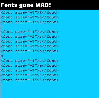 become size 3, etc., etc. When a font tag is closed, the text is then displayed in the previous font. If you switch